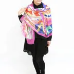 スタンダードな大判サイズで巻きでも羽織でもどちらでも使いやすくなっています。特に春夏の日除けや冷房対策としても使いやすく、ファッションのアクセントとしてなら一年中使うことができます。