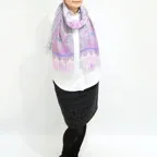 スタンダードな大判サイズで巻きでも羽織でもどちらでも使いやすくなっています。特に春夏の日除けや冷房対策としても使いやすく、ファッションのアクセントとしてなら一年中使うことができます。