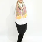 一巻きでどんなコーデもおしゃれに変身!端正なペイズリー柄をカラフルに描いた一枚です。