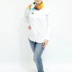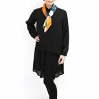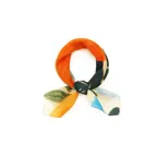 65cm×65cmの小判スカーフで、アスコットタイのようにシャツやブラウスの中におさめて使うこともできます。室内でも巻いたままでいられるので使いやすくなっています。