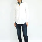 65cm×65cmの小判スカーフで、アスコットタイのようにシャツやブラウスの中におさめて使うこともできます。室内でも巻いたままでいられるので使いやすくなっています。