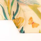 華やかさとスタイルアップの両方を叶えるおしゃれなデザイン。優しい色使いで扱いやすいスカーフです。