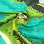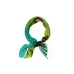 65cm×65cmの小判スカーフで、アスコットタイのようにシャツやブラウスの中におさめて使うこともできます。室内でも巻いたままでいられるので使いやすくなっています。