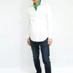 65cm×65cmの小判スカーフで、アスコットタイのようにシャツやブラウスの中におさめて使うこともできます。室内でも巻いたままでいられるので使いやすくなっています。