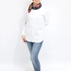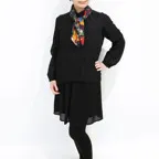 65cm×65cmの小判スカーフで、アスコットタイのようにシャツやブラウスの中におさめて使うこともできます。室内でも巻いたままでいられるので使いやすくなっています。
