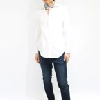 65cm×65cmの小判スカーフで、アスコットタイのようにシャツやブラウスの中におさめて使うこともできます。室内でも巻いたままでいられるので使いやすくなっています。