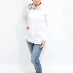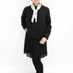 65cm×65cmの小判スカーフで、アスコットタイのようにシャツやブラウスの中におさめて使うこともできます。室内でも巻いたままでいられるので使いやすくなっています。