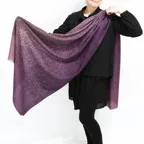 バランスの良い大判サイズで、巻きでも羽織でもどちらも使いやすいストールです。特に羽織は全面に施された刺繍が美しく輝き、サッとあしらうだけで全体の印象を大きく変えてくれます。