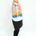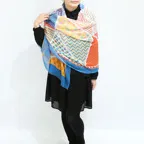スタンダードな大判サイズで巻きでも羽織でもどちらでも使いやすくなっています。特に春夏の日除けや冷房対策としても使いやすく、ファッションのアクセントとしてなら一年中使うことができます。