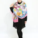 スタンダードな大判サイズで巻きでも羽織でもどちらでも使いやすくなっています。特に春夏の日除けや冷房対策としても使いやすく、ファッションのアクセントとしてなら一年中使うことができます。