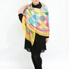 スタンダードな大判サイズで巻きでも羽織でもどちらでも使いやすくなっています。特に春夏の日除けや冷房対策としても使いやすく、ファッションのアクセントとしてなら一年中使うことができます。