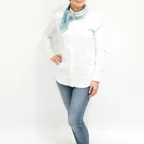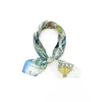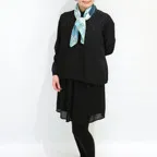 65cm×65cmの小判スカーフで、アスコットタイのようにシャツやブラウスの中におさめて使うこともできます。室内でも巻いたままでいられるので使いやすくなっています。