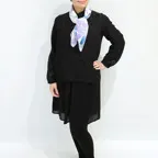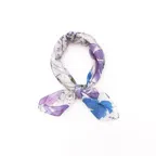 65cm×65cmの小判スカーフで、アスコットタイのようにシャツやブラウスの中におさめて使うこともできます。室内でも巻いたままでいられるので使いやすくなっています。