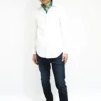 65cm×65cmの小判スカーフで、アスコットタイのようにシャツやブラウスの中におさめて使うこともできます。室内でも巻いたままでいられるので使いやすくなっています。