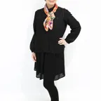 65cm×65cmの小判スカーフで、アスコットタイのようにシャツやブラウスの中におさめて使うこともできます。室内でも巻いたままでいられるので使いやすくなっています。