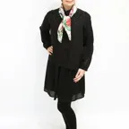 65cm×65cmの小判スカーフで、アスコットタイのようにシャツやブラウスの中におさめて使うこともできます。室内でも巻いたままでいられるので使いやすくなっています。