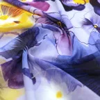 しっとりとしたやわらかい生地感で、肌に沿うような質感に仕上がっています。狙ったシルエットを出しやすく、取り扱いがしやすいスカーフです。