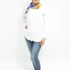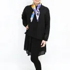 65cm×65cmの小判スカーフで、アスコットタイのようにシャツやブラウスの中におさめて使うこともできます。室内でも巻いたままでいられるので使いやすくなっています。