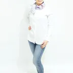65cm×65cmの小判スカーフで、アスコットタイのようにシャツやブラウスの中におさめて使うこともできます。室内でも巻いたままでいられるので使いやすくなっています。