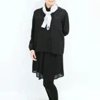 しっとりとしたやわらかい生地感で、肌に沿うような質感に仕上がっています。狙ったシルエットを出しやすく、取り扱いがしやすいスカーフです。