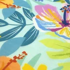 涼しげに、華やかに。ほっそり魅せを叶える、正方形スカーフ。多色使いでアクセント効果と合わせやすさのバランスが良い一枚です。