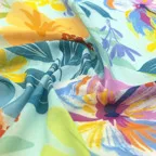 涼しげに、華やかに。ほっそり魅せを叶える、正方形スカーフ。多色使いでアクセント効果と合わせやすさのバランスが良い一枚です。
