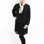 65cm×65cmの小判スカーフで、アスコットタイのようにシャツやブラウスの中におさめて使うこともできます。室内でも巻いたままでいられるので使いやすくなっています。