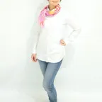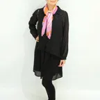 小ぶりなスクエアサイズで、アスコットタイのようにシャツやブラウスの中におさめて使うこともできます。室内でも巻いたままでいられるので使いやすくなっています。