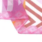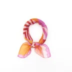小ぶりなスクエアサイズで、アスコットタイのようにシャツやブラウスの中におさめて使うこともできます。室内でも巻いたままでいられるので使いやすくなっています。