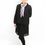 小ぶりなスクエアサイズで、アスコットタイのようにシャツやブラウスの中におさめて使うこともできます。室内でも巻いたままでいられるので使いやすくなっています。