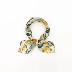 65cm×65cmの小判スカーフで、アスコットタイのようにシャツやブラウスの中におさめて使うこともできます。室内でも巻いたままでいられるので使いやすくなっています。