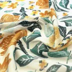 しっとりとしたやわらかい生地感で、肌に沿うような質感に仕上がっています。狙ったシルエットを出しやすく、取り扱いがしやすいスカーフです。