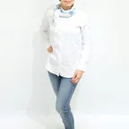 65cm×65cmの小判スカーフで、アスコットタイのようにシャツやブラウスの中におさめて使うこともできます。室内でも巻いたままでいられるので使いやすくなっています。