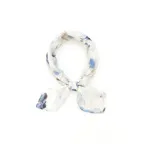 65cm×65cmの小判スカーフで、アスコットタイのようにシャツやブラウスの中におさめて使うこともできます。室内でも巻いたままでいられるので使いやすくなっています。
