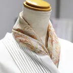 小ぶりサイズのシルクストール。スカーフやアスコットタイのようにコンパクトにまとめることができます。