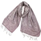 スタンダートな大判サイズで巻いても羽織っても、どちらも使いやすいタイプです。特に羽織は全体の印象がパッと華やかに、エレガントな雰囲気に変化します。