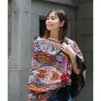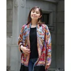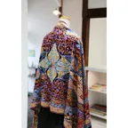 全面に施されたアーリ刺繍は誰もが振り返るほどの美しさ。ひとたび羽織ればパッと華やかにゴージャスな雰囲気に変わります。上半身を覆えるので、着ている服を気にせず合わせることができます。