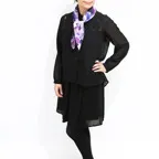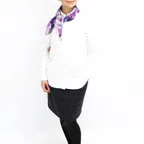 65cm×65cmの小判スカーフで、アスコットタイのようにシャツやブラウスの中におさめて使うこともできます。室内でも巻いたままでいられるので使いやすくなっています。