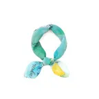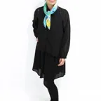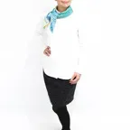 65cm×65cmの小判スカーフで、アスコットタイのようにシャツやブラウスの中におさめて使うこともできます。室内でも巻いたままでいられるので使いやすくなっています。