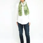 バランスの良いミドルサイズで巻きだけでなく羽織でも合わせやすいタイプ。程よい弾力性もありシワもつきにくいストールです。シワを気にすることなく、使いたい時にすぐに使うことができます。