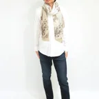 モチーフが主張しすぎず、品よく調和。理想的な“映える”ストールです。
