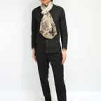 バランスの良いミドルサイズで巻きだけでなく羽織でも合わせやすいタイプ。程よい弾力性もありシワもつきにくいストールです。シワを気にすることなく、使いたい時にすぐに使うことができます。