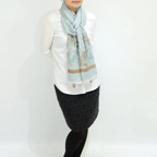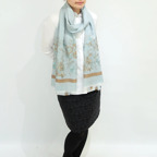 全面に施されたアーリ刺繍が美しく、品の良い女性らしい装いを叶えてくれます。カジュアルな普段使いはもちろん、フォーマルなシーンにも使いやすく、さらに和装とも相性が非常に良くなっています。スタイルや場所を問わず合わせることができる優れたストールです。