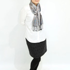 さらにアクセントとしてならカジュアルな装いにも合わせやすい、とても使い勝手の良いストールです。