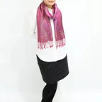 シルク100%の品の良い光沢感と美しいドレープが相まって、フォーマルな場面やパーティーシーンで大活躍します。シャツやブラウス、ドレスやスーツ、ジャケットなどのトップスと相性が抜群!一巻きでいつものファッションを格上げできます。