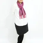 さらにアクセントとしてならカジュアルな装いにも合わせやすい、とても使い勝手の良いストールです。
