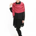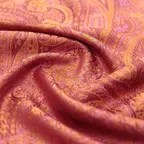 シルクの存在感が際立つ洗練ストール。光の当たり方によって浮き沈みするペイズリー柄が印象的な一枚です。