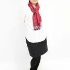 さらにアクセントとしてならカジュアルな装いにも合わせやすい、とても使い勝手の良いストールです。