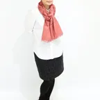 スタンダードな大判サイズで、首に巻くことはもちろん、室内でのひざ掛けにも、肩から羽織る使い方もできます。特に羽織は上半身を覆えるので、着ている服を気にせず合わせることができます。