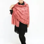 ウールコットンのしなやかな生地に同色の刺繍を重ねた珍しいストール。派手すぎず地味すぎない色使いも魅力です。
